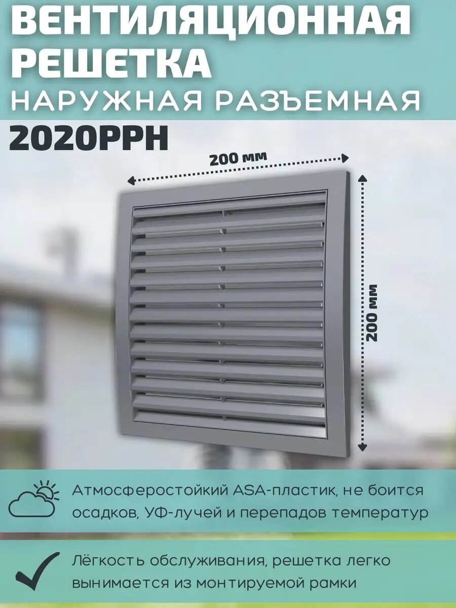 СохранитьРешетка вентиляционная ERA 2020РРН Gray, разъемная, 200х200 мм, ASA-пластик, серый интересное: