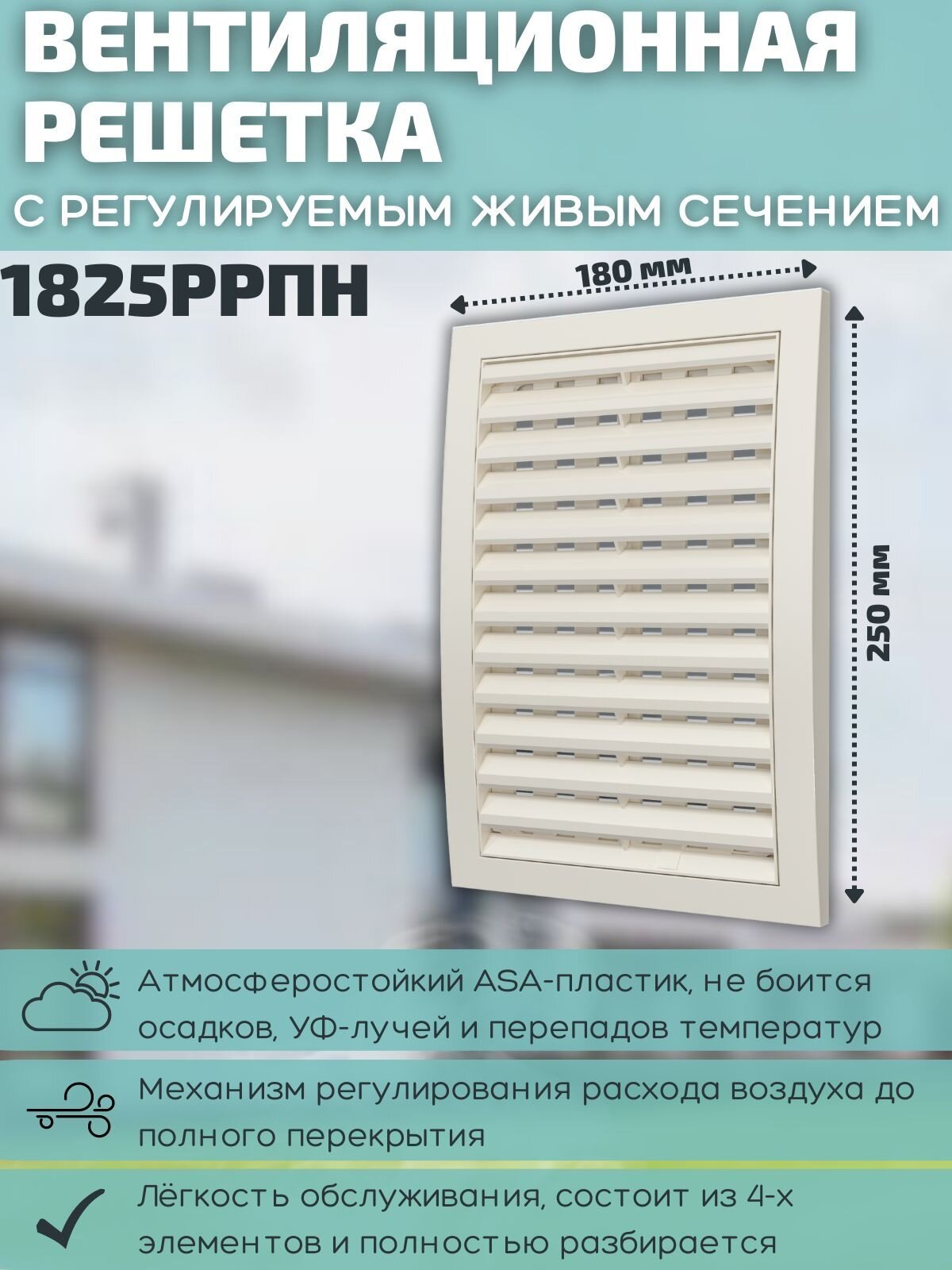 Решетка вентиляционная 180x250 регулируемая наружная 1825РРПН Ivory