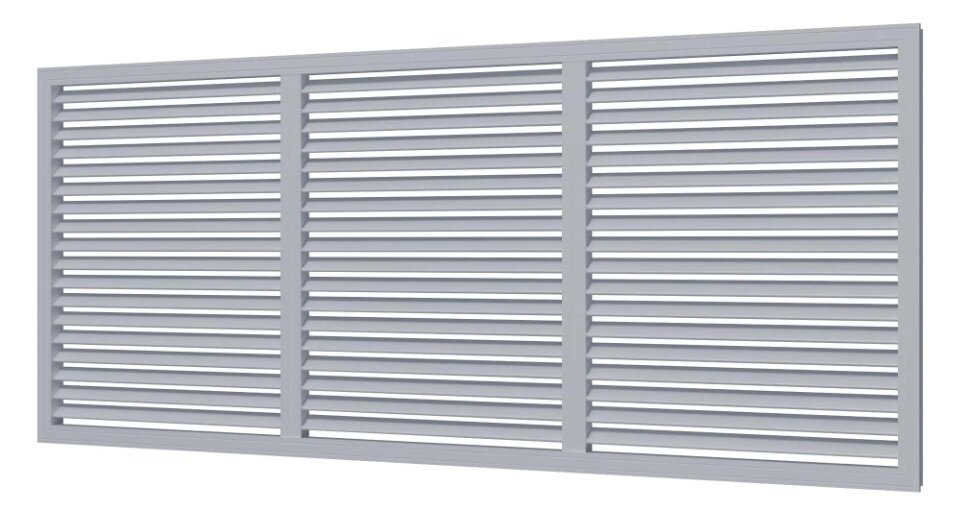 Решетка жалюзийная 130х330мм наружний размер (сечение 100х300мм) накладная из оцинкованной стали с наружними жалюзями