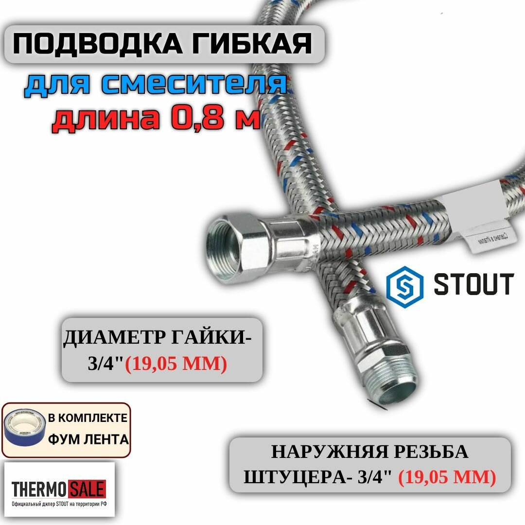 Гибкая подводка для воды НР 3/4 х ВР 3/4, длина 800 мм (Stout) арт. SHF-0208-182020