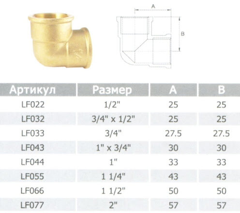 Фитинг резьба угольник 90° Tim LF044, 1" 1 шт