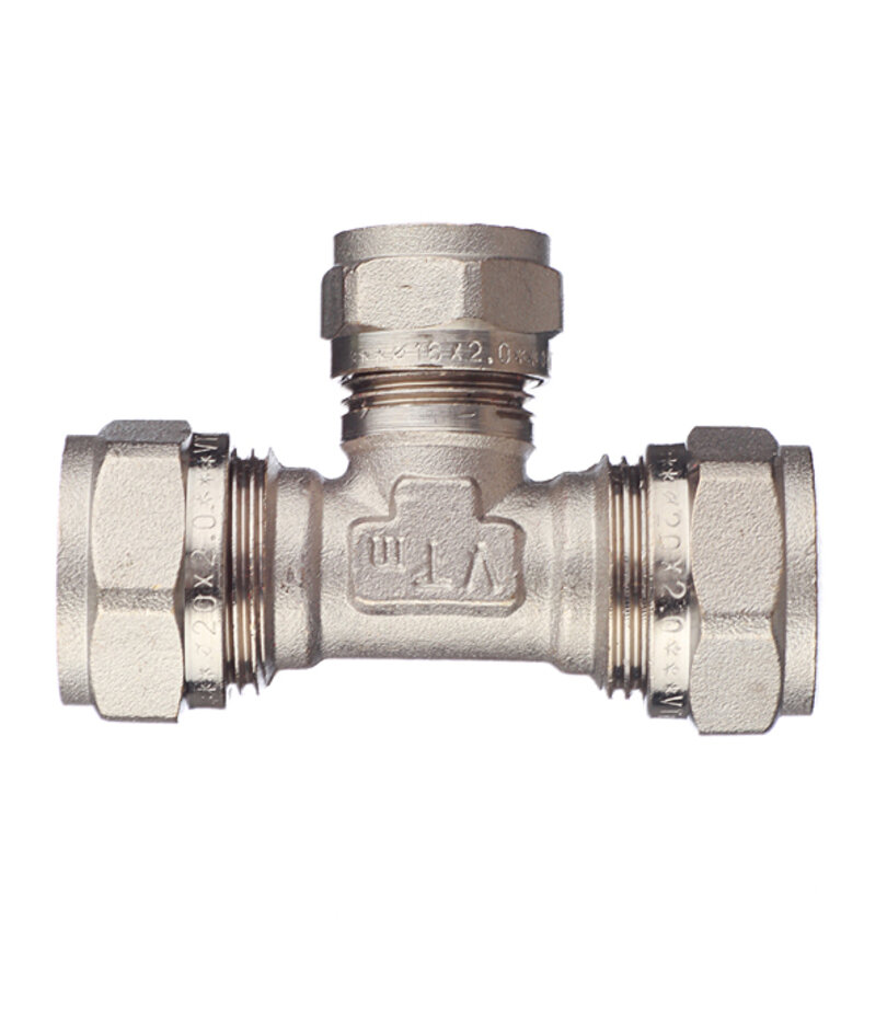Тройник м/п Valtec обжим 20х16х20мм, 10бар, t-115*C, никель
