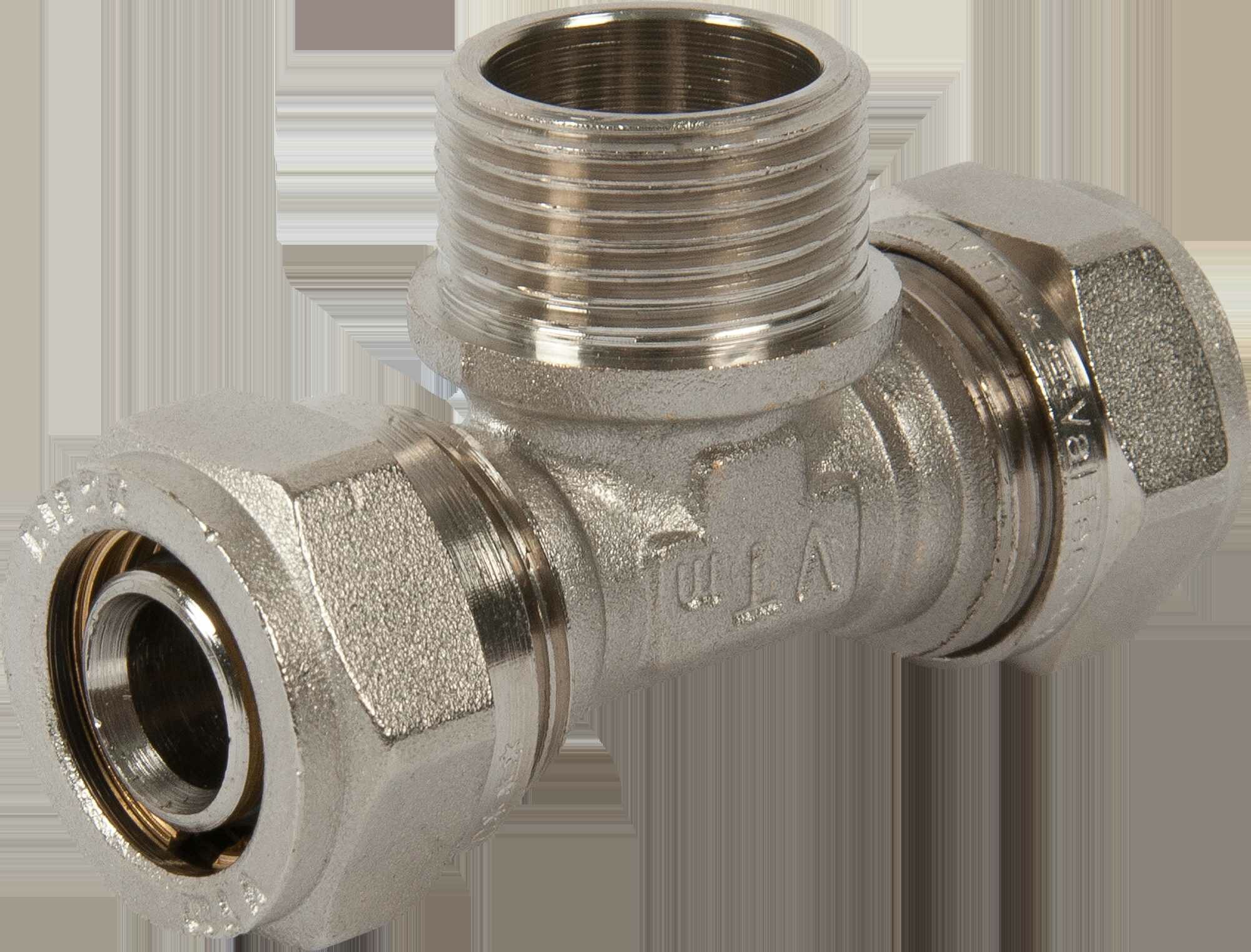 Тройник обжимной 20 мм х 3/4" НР х 20 мм для металлопластиковых труб 20(2,0) VALTEC / Латунный фитинг под обжим с переходом на наружную резьбу ДУ20, арт. VTm.333.N.200520