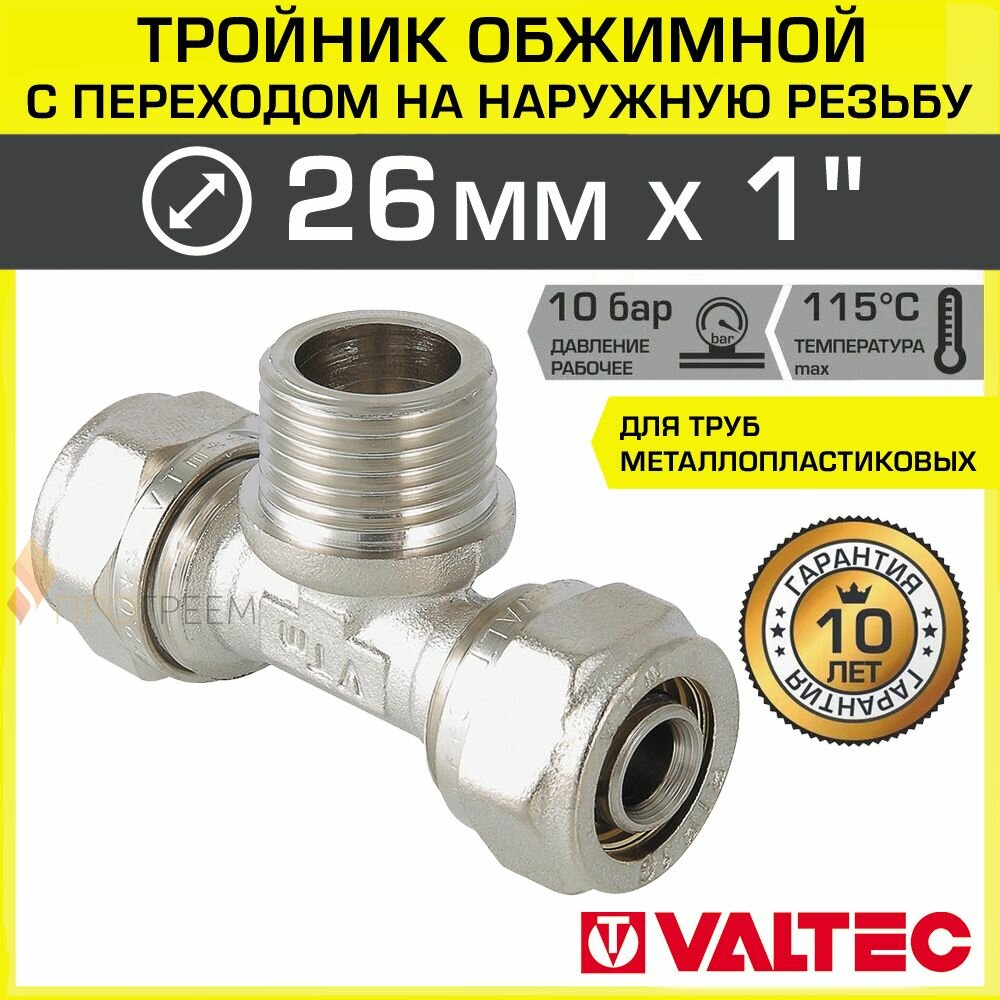 5 шт - Тройник обжимной 26 мм х 1" НР х 26 мм для металлопластиковых труб 26(3,0) VALTEC / Латунный фитинг под обжим с переходом на наружную резьбу ДУ25, арт. VTm.333.N.260626