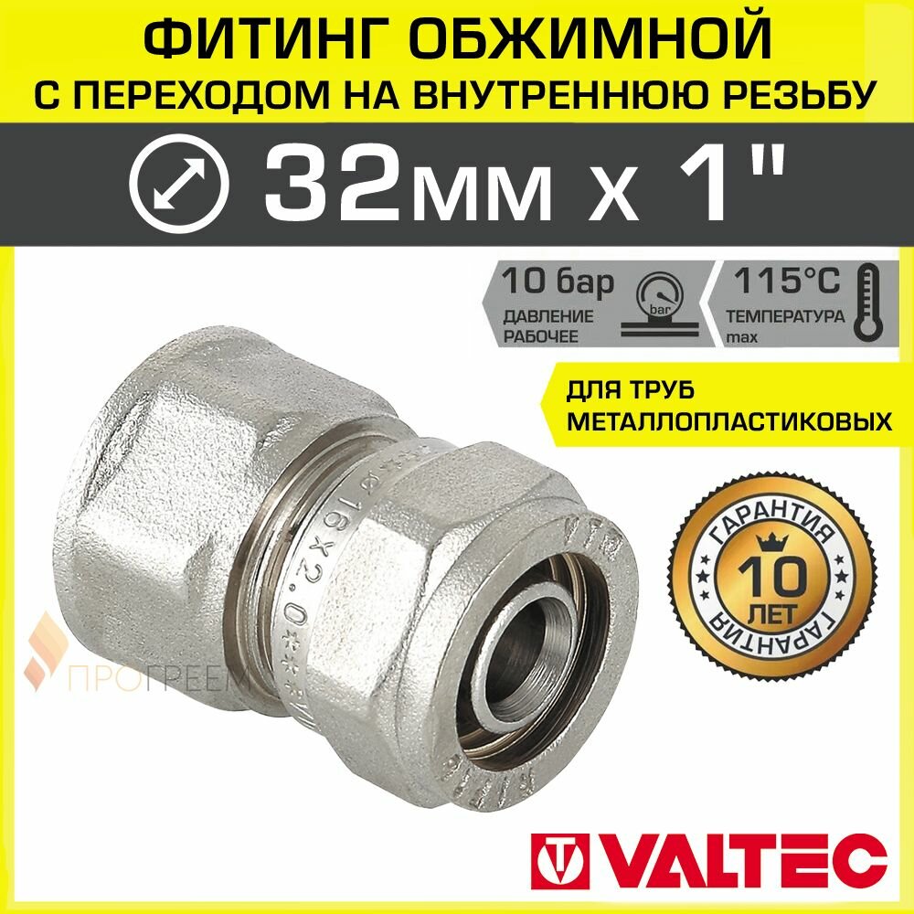 Соединитель обжимной с переходом на внутреннюю резьбу 32х1" VALTEC VTm.302.N.003206