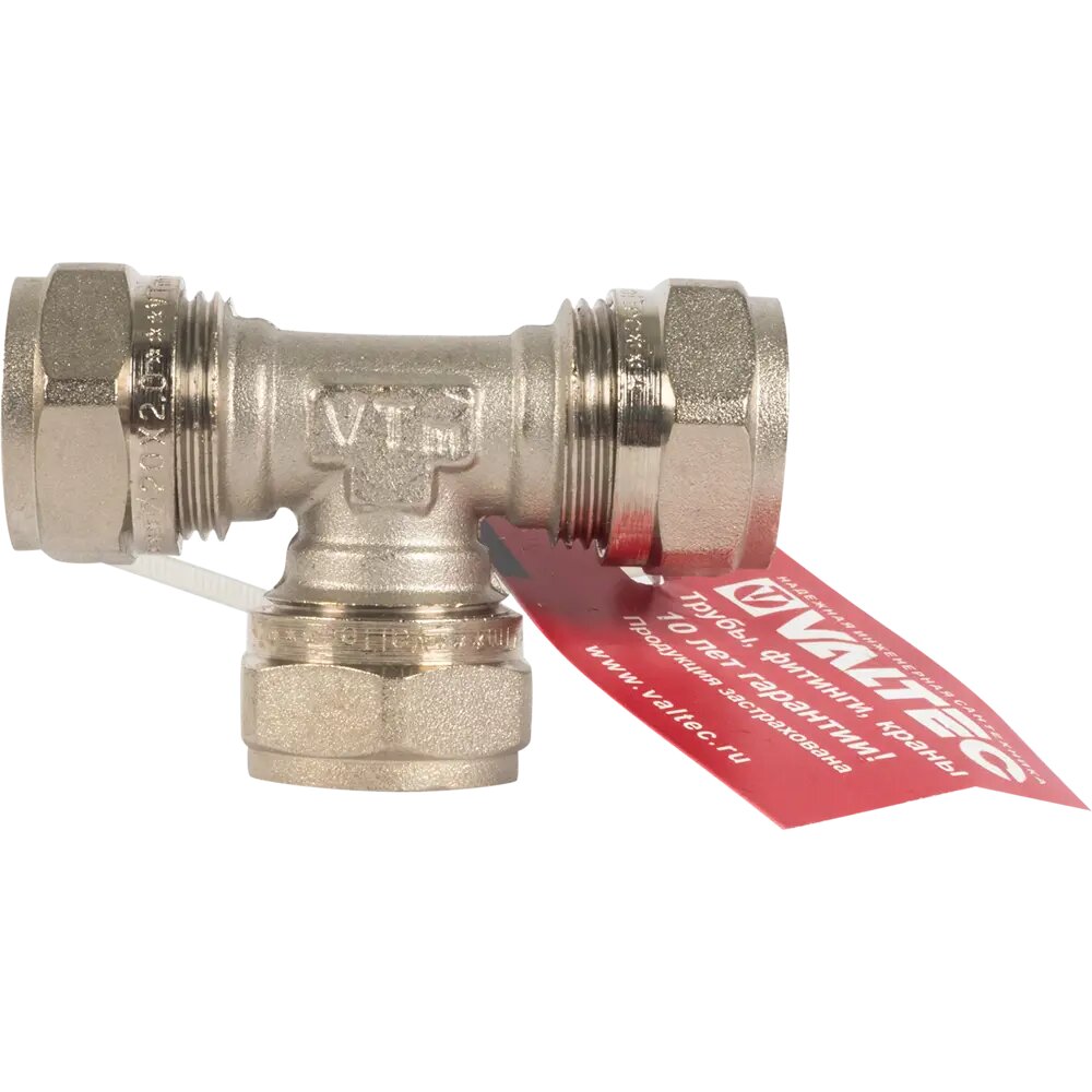 Тройник м/п Valtec обжим 20х20х20мм, 10бар, t-115*C, никель