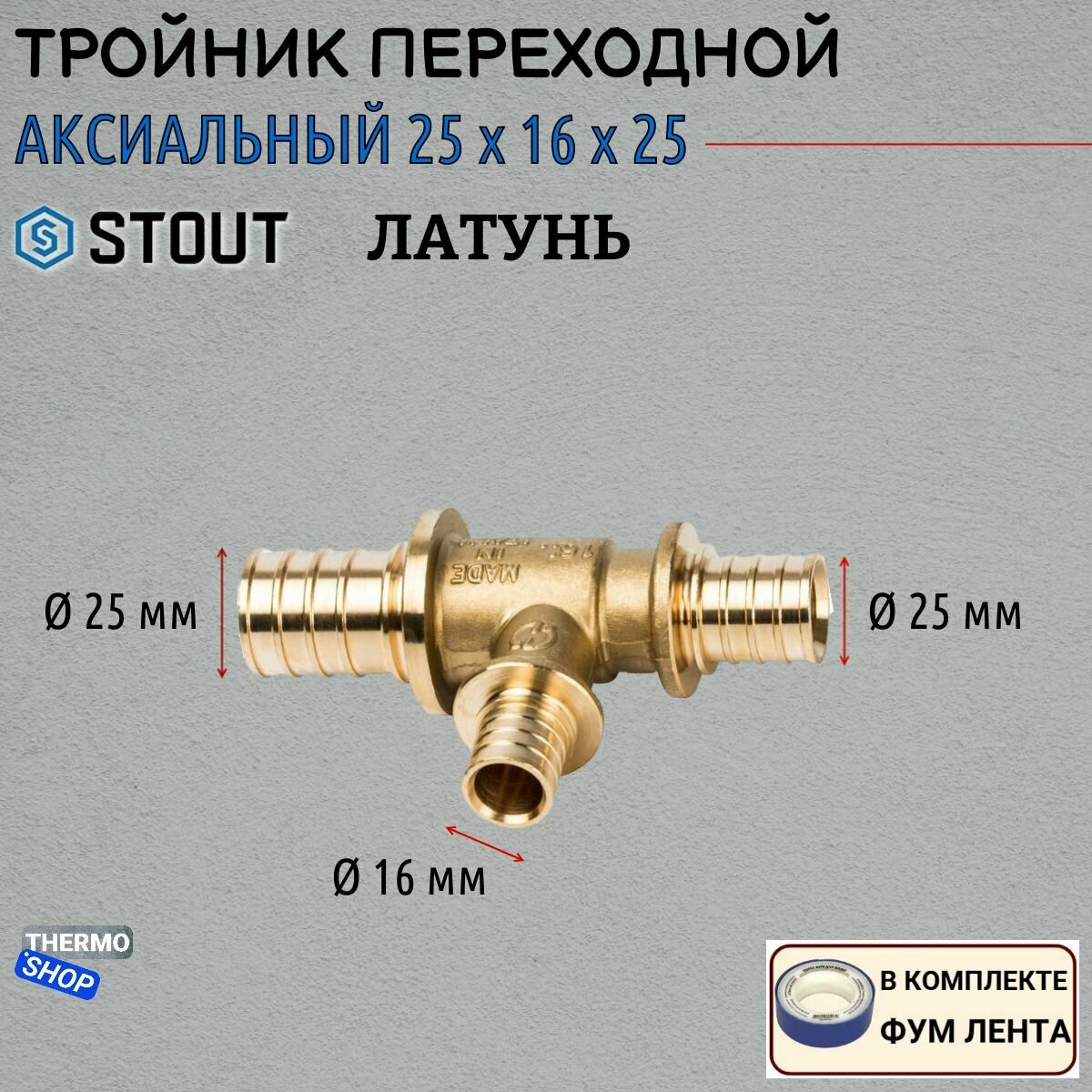 Stout Тройник переходной 25x16x25 SFA-0014-251625 RG008P0UD7D5H4 .