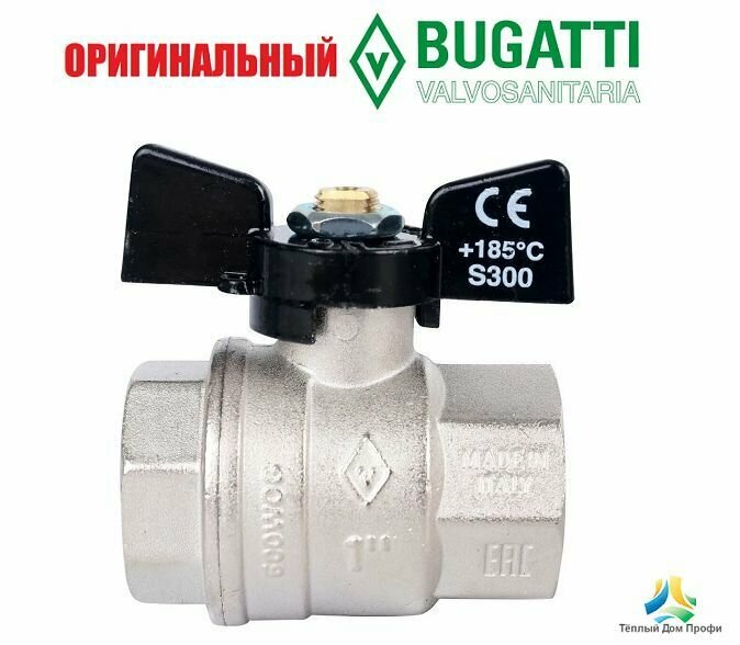 Кран шаровой Внутренний-Внутренний (бабочка) Bugatti OREGON 302 (1") 03020072