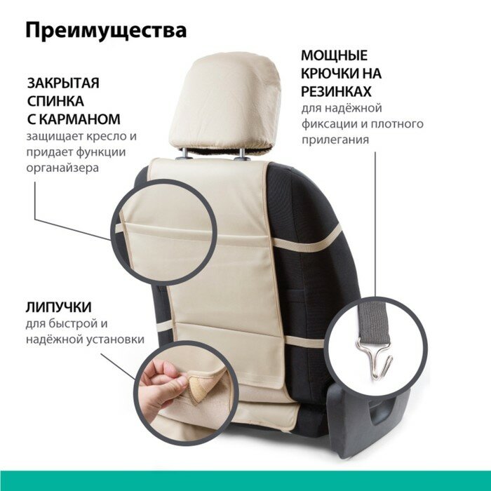 СохранитьНакидка на сиденье ортопедическая Multi Comfort, 6 упоров, 3 предмета, экокожа, бежевый интересное: