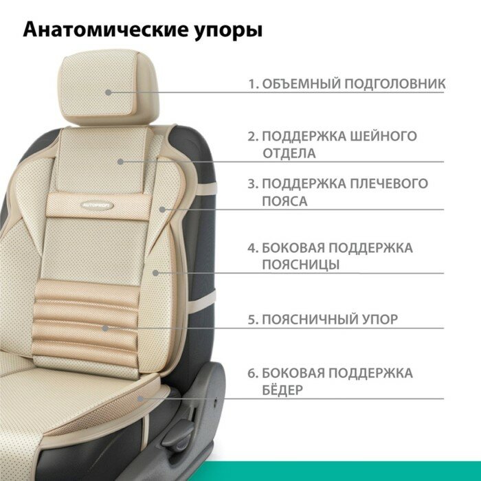 Накидка на сиденье AUTOPROFI MLT-320G Multi Comfort, анатомическая, 6 упоров, 3 предмета, материал экокожа, бежевый