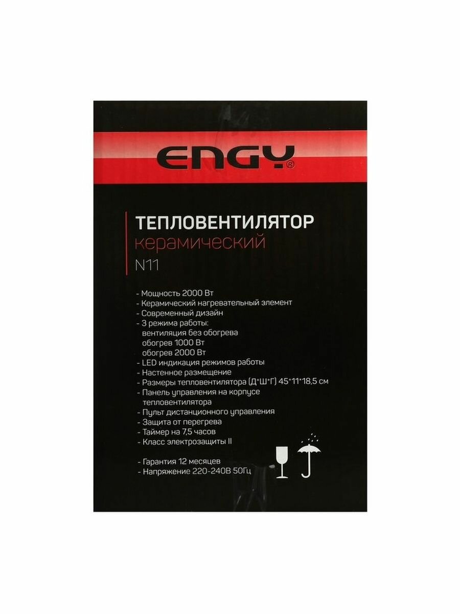 Тепловентилятор Engy N11, керамический, настенный, 2000 Вт, 2 режима, белый Engy 7505100 .