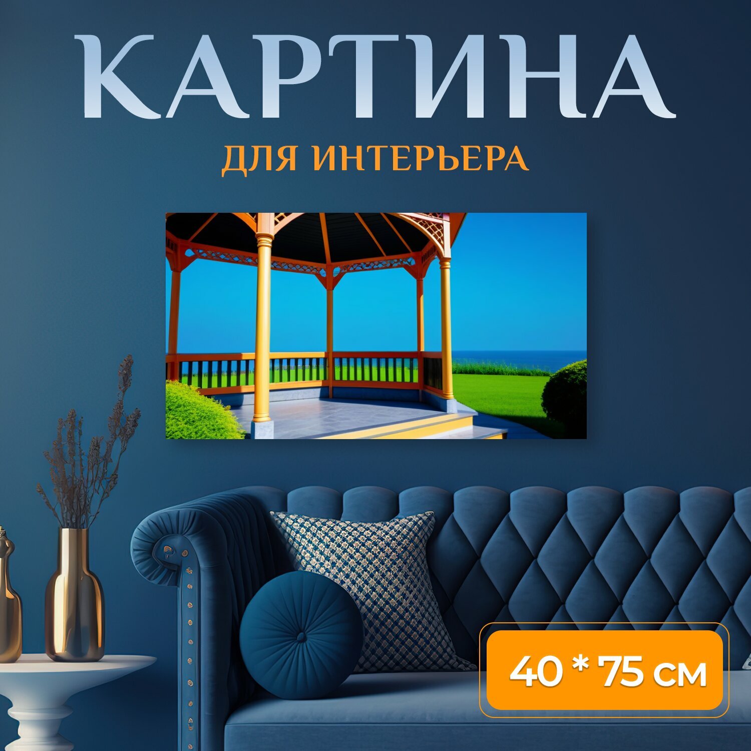 Картина на холсте в кафе "Уютная беседка" на подрамнике 75х40 см. для интерьера интересное: