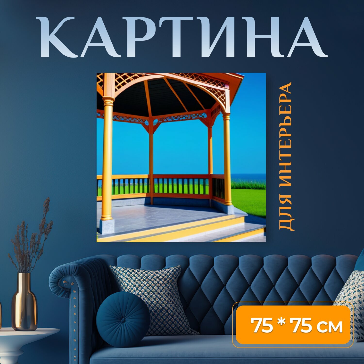 Картина на холсте в кафе "Уютная беседка" на подрамнике 75х75 см. для интерьера интересное: