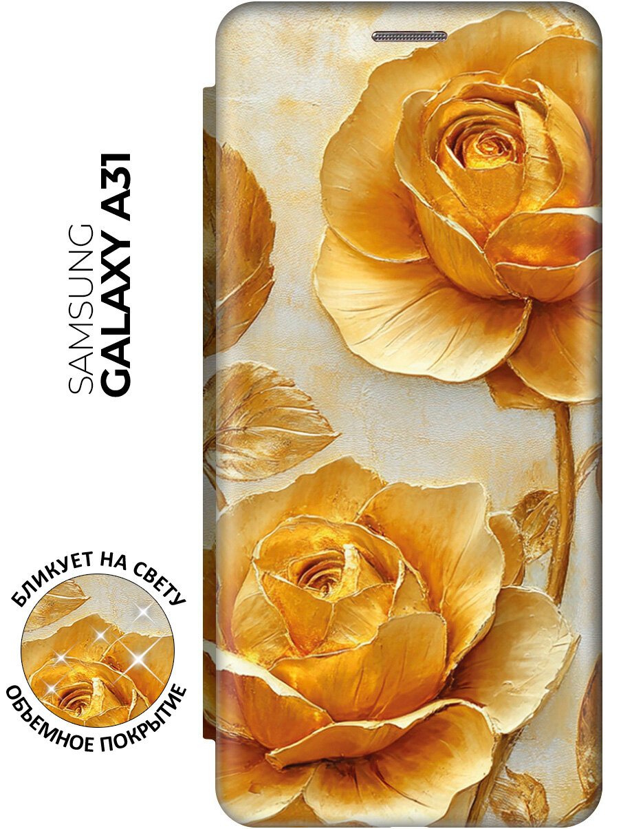 Чехол-книжка на Samsung Galaxy A31 с принтом "Золотые розы" золотой интересное: