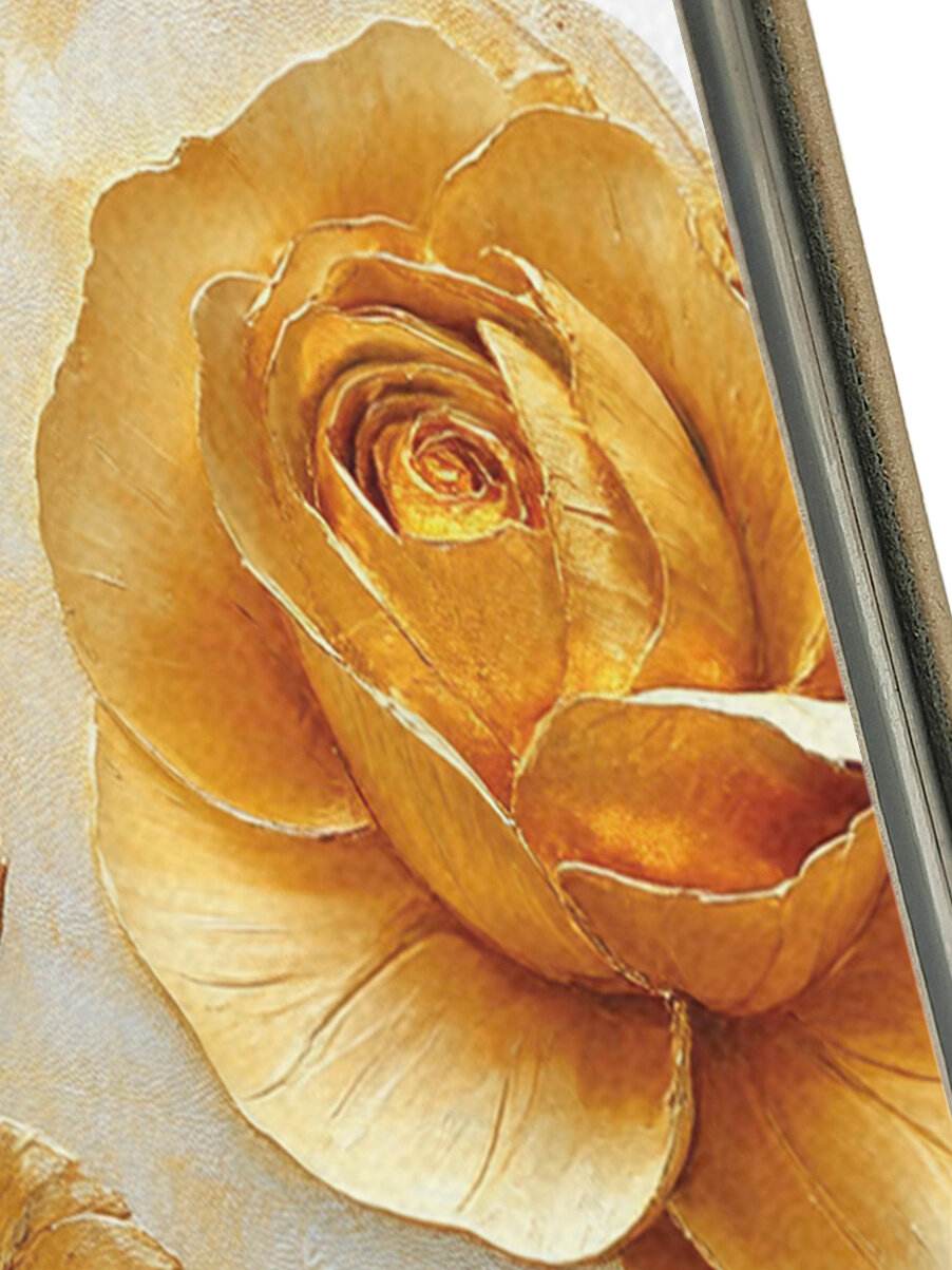 Купить Чехол-книжка на Samsung Galaxy A31 с принтом "Золотые розы" золотой
