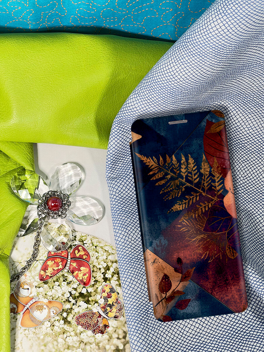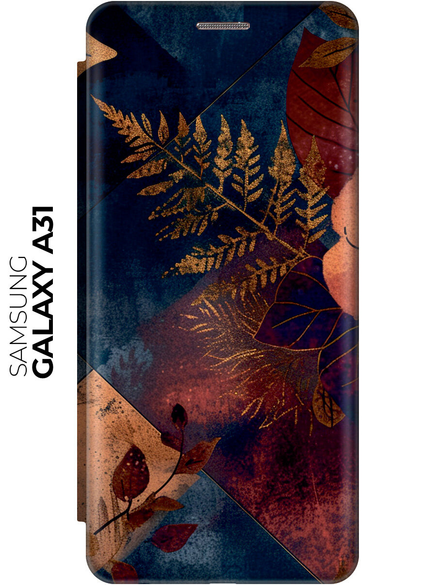 Чехол-книжка на Samsung Galaxy A31 с принтом "Ромбовидная осень" золотой интересное: