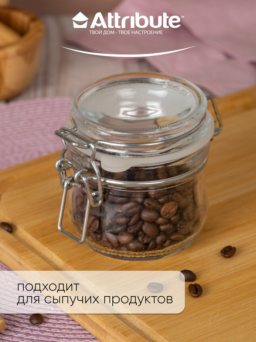 Купить Банка для хранения продуктов, 250мл с крышкой бугельный замок,ATTRIBUTE JAR, стекло, цвет прозрачный