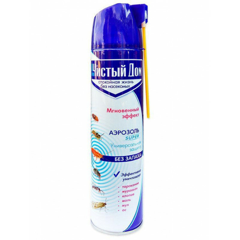 Аэрозоль Супер от насекомых "Чистый дом", универсальный, без запаха, 400 мл./В упаковке шт: 1