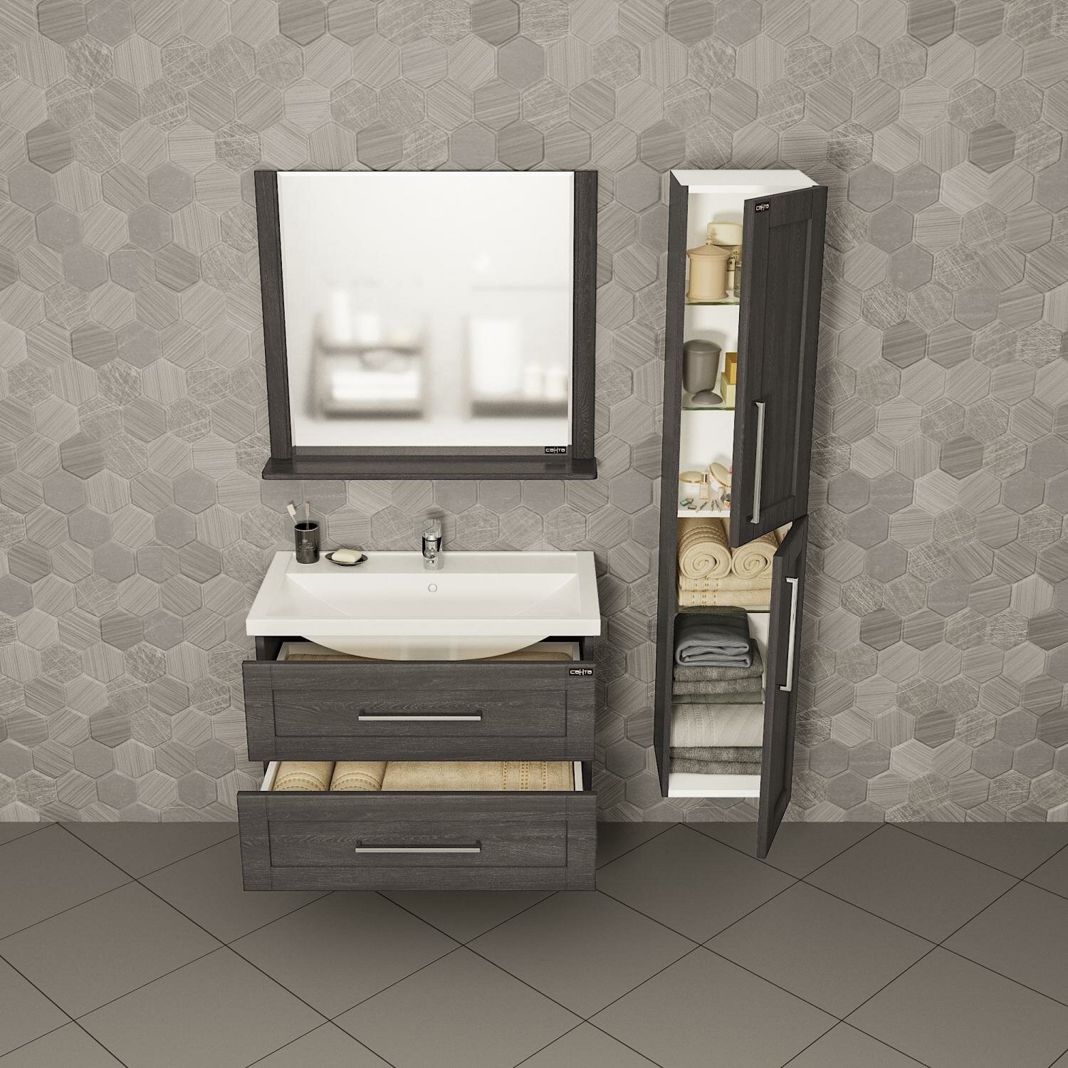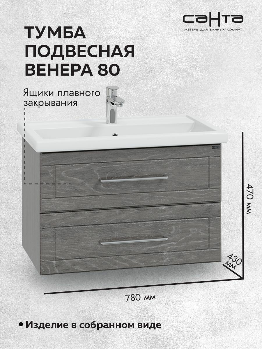 Тумба для комплекта СанТа Венера 80 подвесная, дуб шале графит