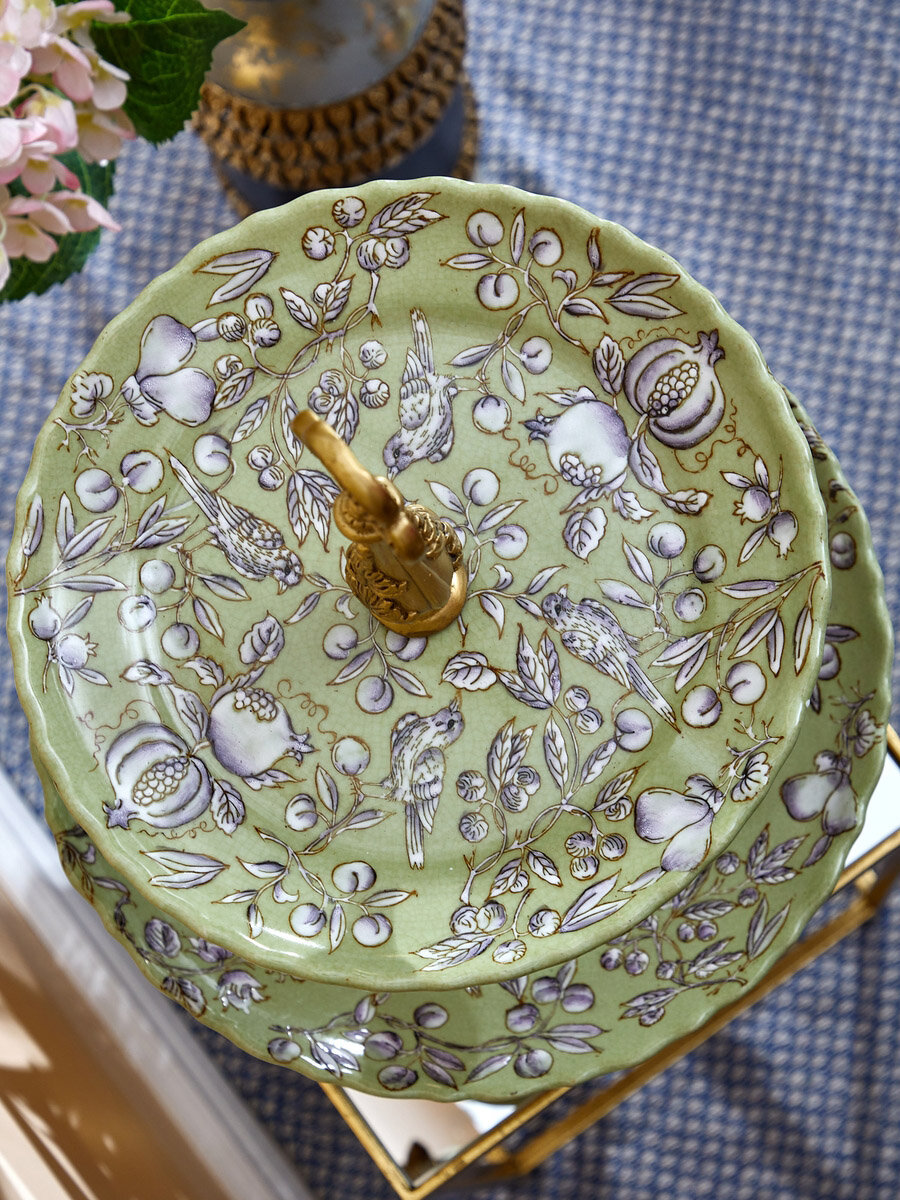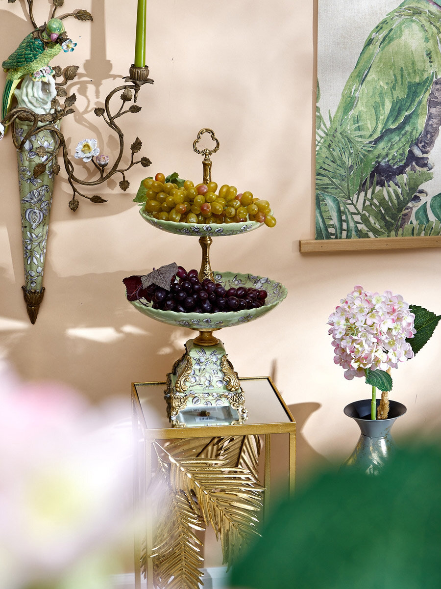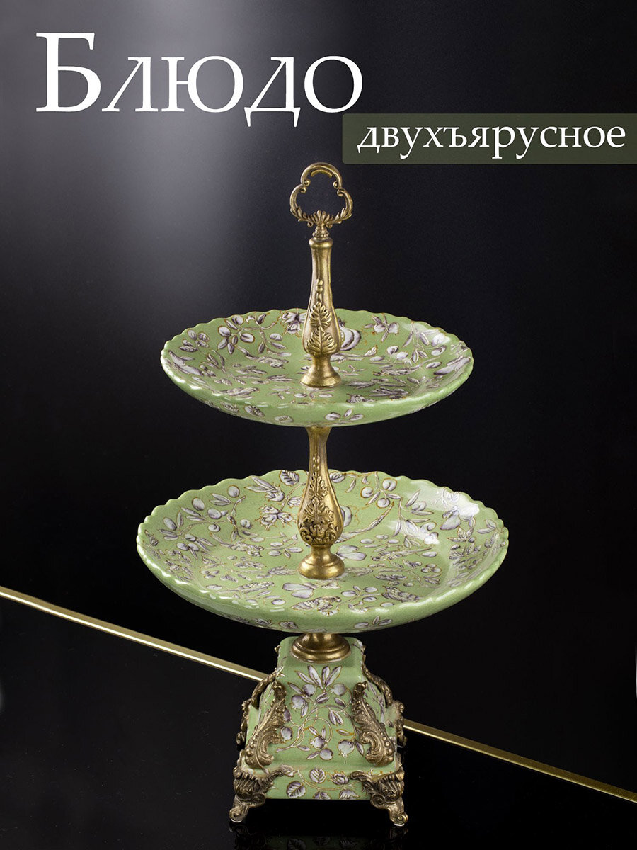 Купить Блюдо сервировочное Glasar двухъярусное 30x30x51 см, фарфор и бронза