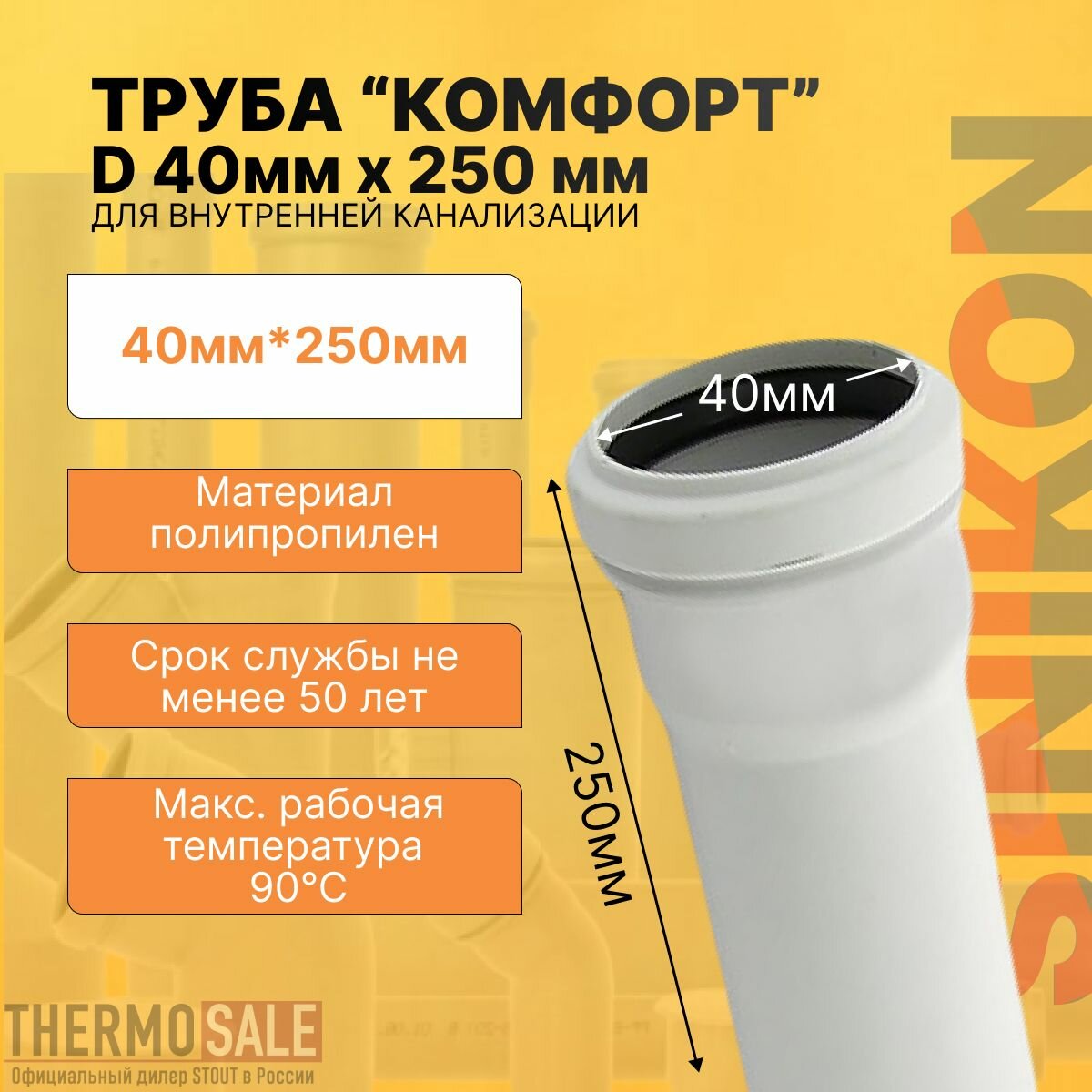 Купить Труба канализационная комфорт плюс D 40мм х 250мм цвет белый Sinikon