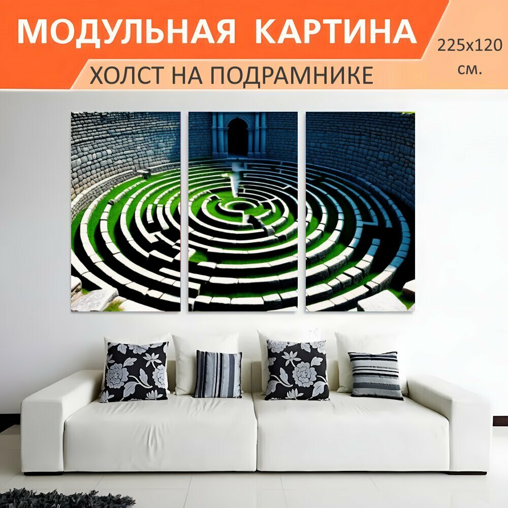 СохранитьМодульная картина на холсте "Затерянный лабиринт из каменных стен" триптих на подрамнике 225х120 см. для интерьера интересное: