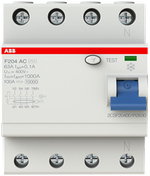 ABB F204 A-63/0,03 УЗО (ВДТ) 4-полюсное 63А 30мA тип А 10кА 2CSF204101R1630