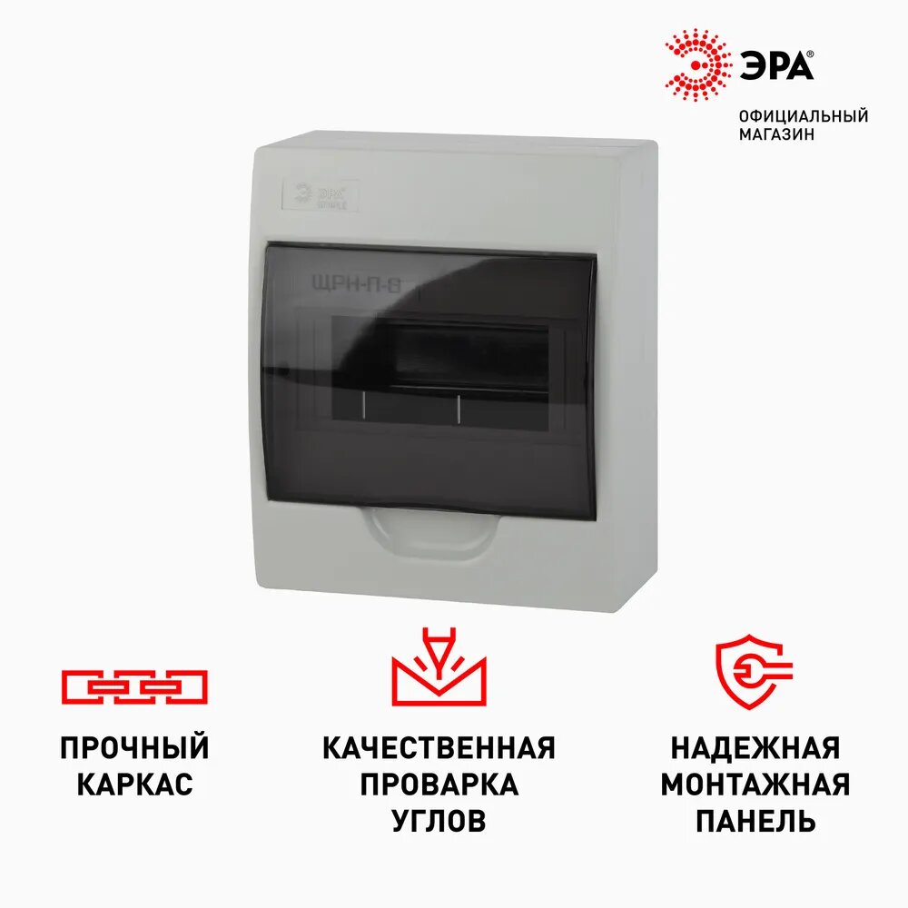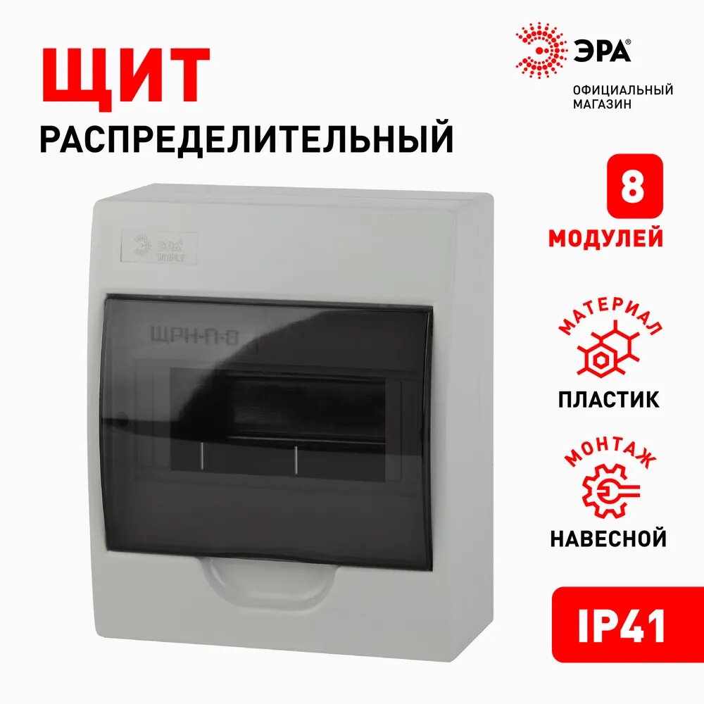 Купить Щит распределительный навесной ЭРА ЩРН-П-08 SIMPLE пластиковый с дверцей IP41, 199х185х95 мм