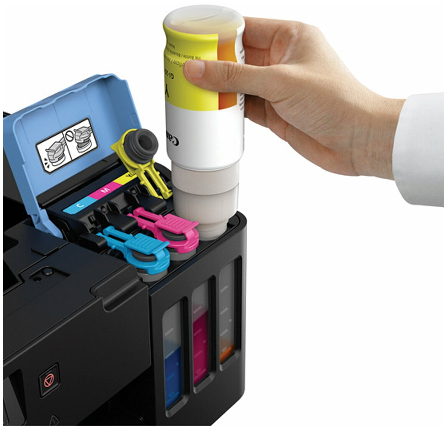 | Плюсы: | До этого был Epson L800 - по удобству использования эти два принтера как небо и земля. Я помню как заправлял эпсон: что-то отсоединять, что-то переворачивать, чернила сбоку - неудобно, еще капнет куда-нибудь, а потом еще вводить коды от банок надо. Здесь открыл - влил - закрыл. Причем ему видимо не важно что влил, оригинал или нет, никакой авторизации чернил не требует. Прям приятно его заправлять.