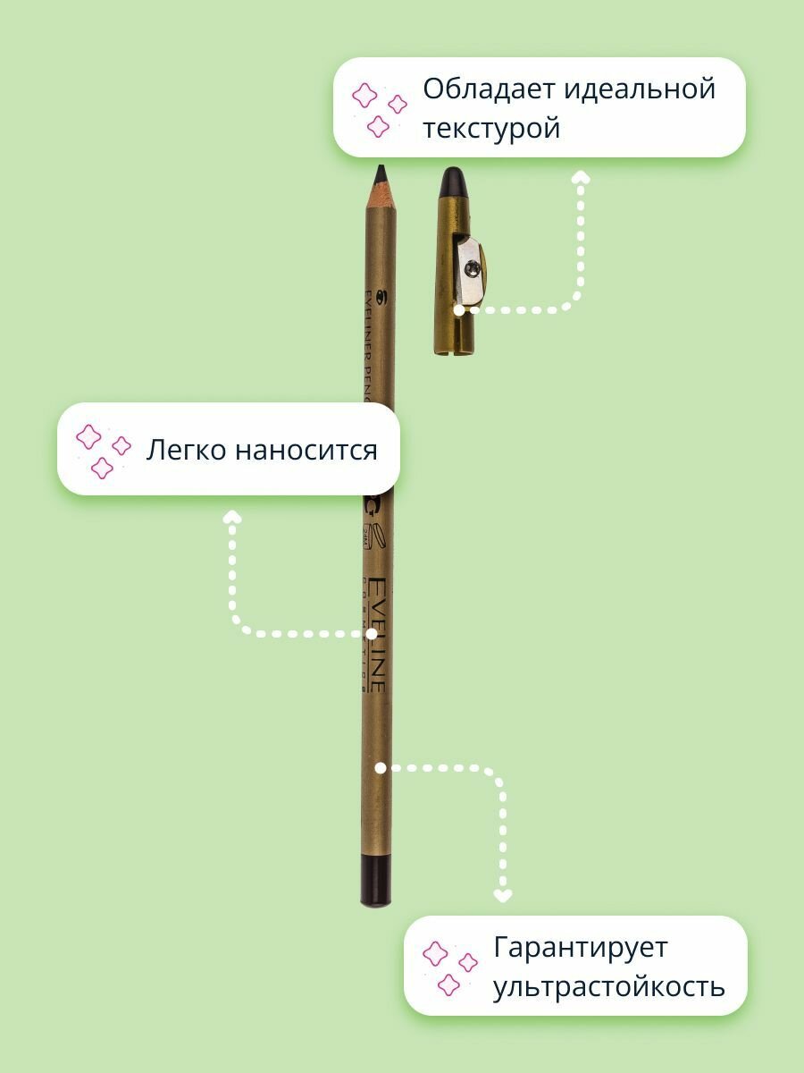 Купить EVELINE Карандаш для макияжа глаз Eyeliner Pencil контурный с точилкой, 9 г, Brown