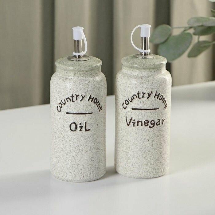Набор керамический для специй и масел Домик в деревне, 4 предмета: солонка 115 мл, перечница 115 мл, бутыль для масла 350 мл, бутыль для уксуса 350 мл интересное:
