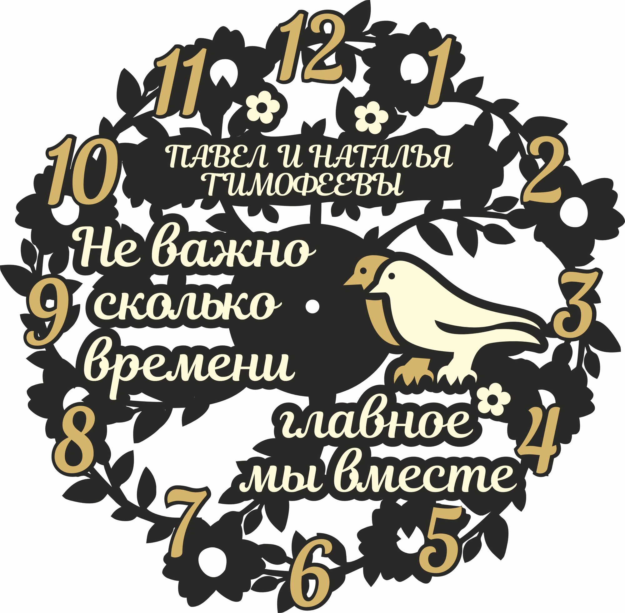 Часы на стену (циферблат) интерьерные большие с фамилией "Павел и Наталья Тимофеевы" 50 см черный интересное: