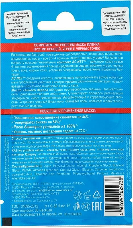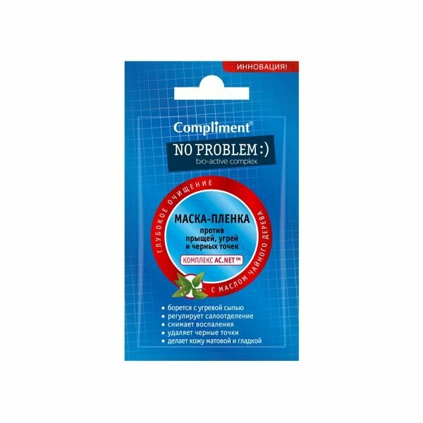 Compliment No problem Маска-пленка против прыщей угрейчерных точек саше 9 г 1 шт интересное: