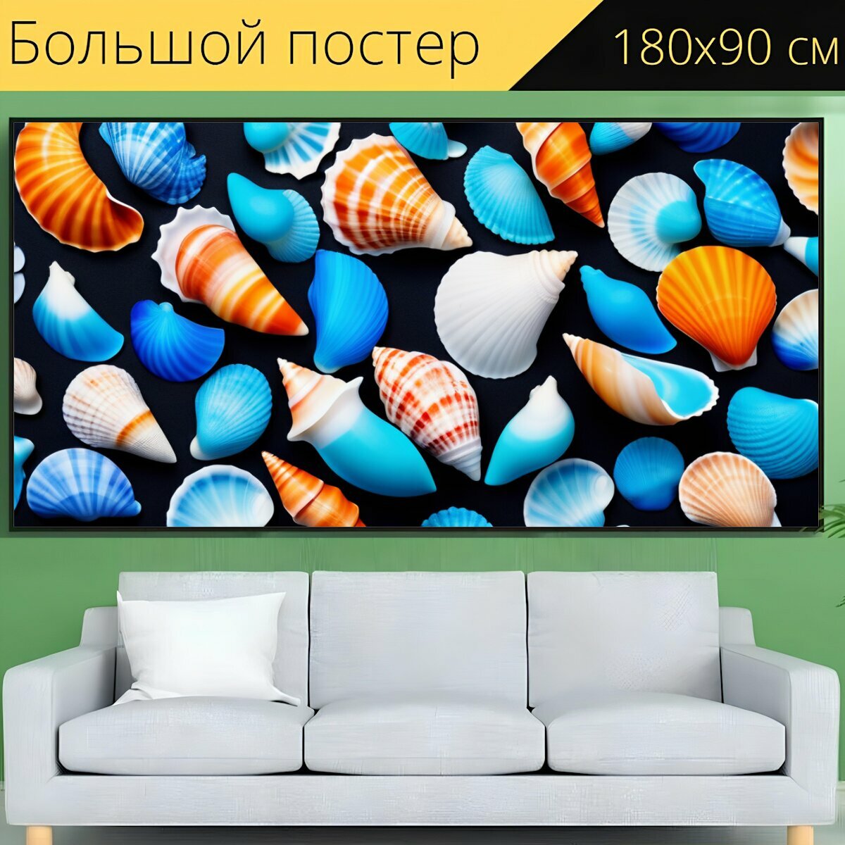 Купить Большой постер "Фотовыставка о красоте ракушек" 180 x 90 см. для интерьера на стену