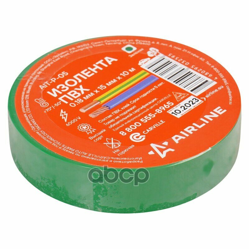 Изолента ПВХ, зеленая, 15 мм*10 м AIT-P-05 AIRLINE
