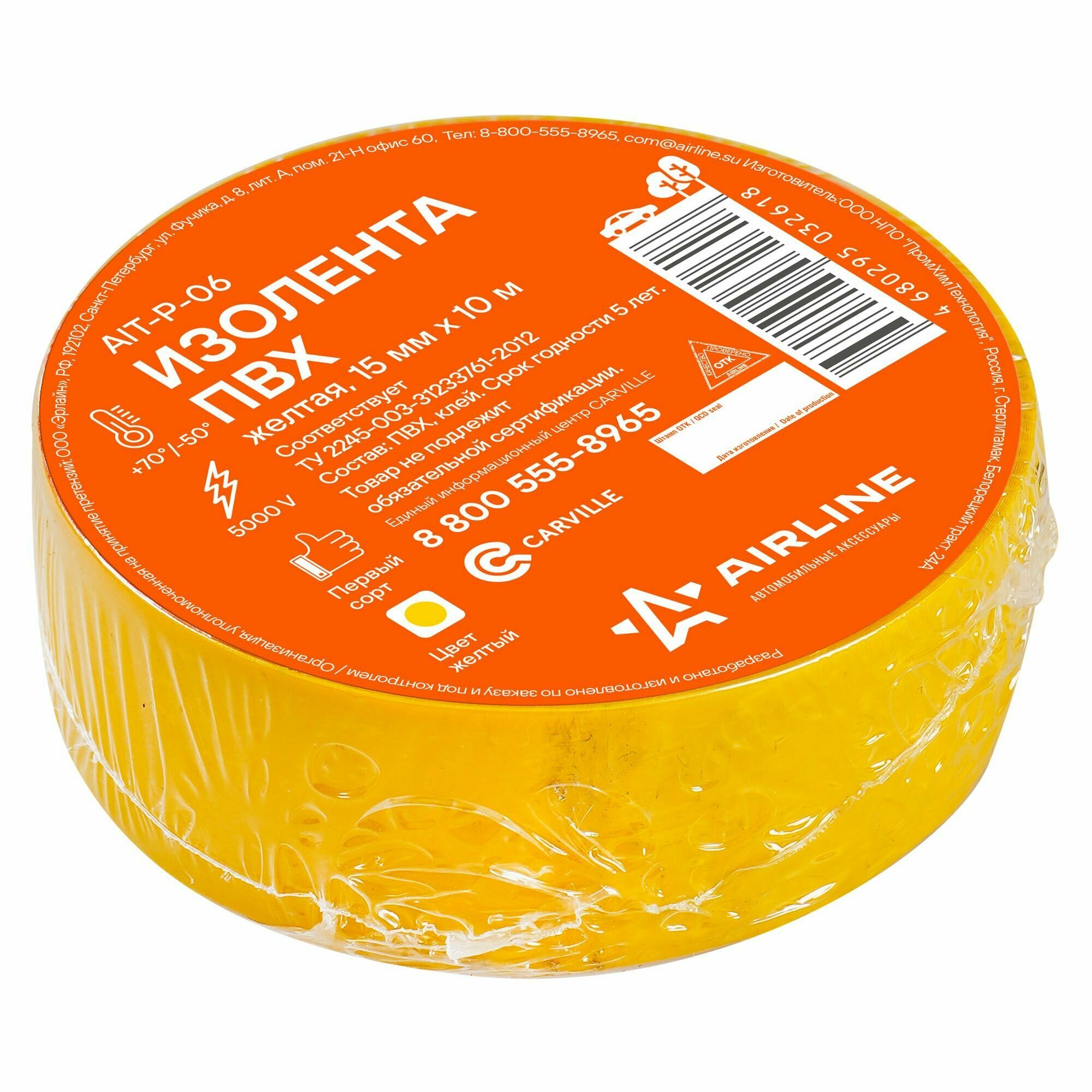 Изолента ПВХ, желтая, 15 мм*10 м (AIT-P-06), Airline, 1 шт