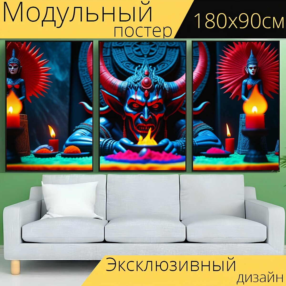 Модульный постер "Необычные демоны на ритуальном алтаре" 180 x 90 см. для интерьера на стену интересное: