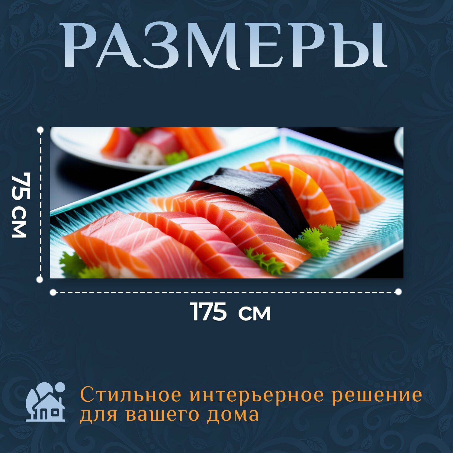 Купить Картина на холсте "Сашими, подаваемое на стеклянных тарелках" на подрамнике 175х75 см. для интерьера