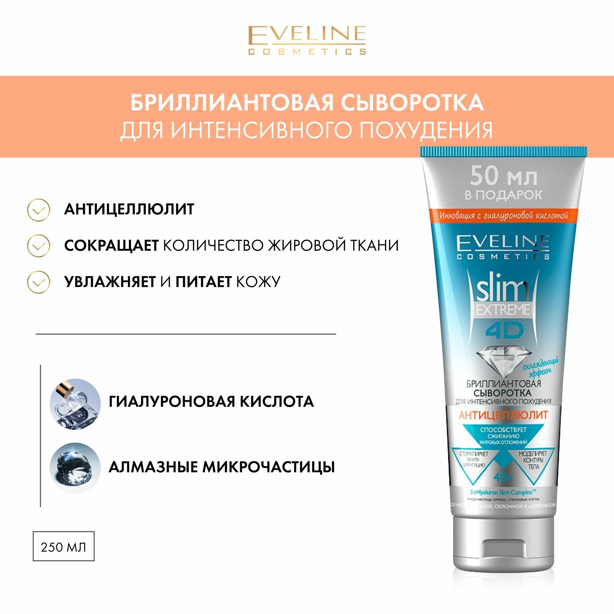 Сыворотка для интенсивного похудения EVELINE Slim Extreme 4D Бриллиантовая антицеллюлит, 250 мл