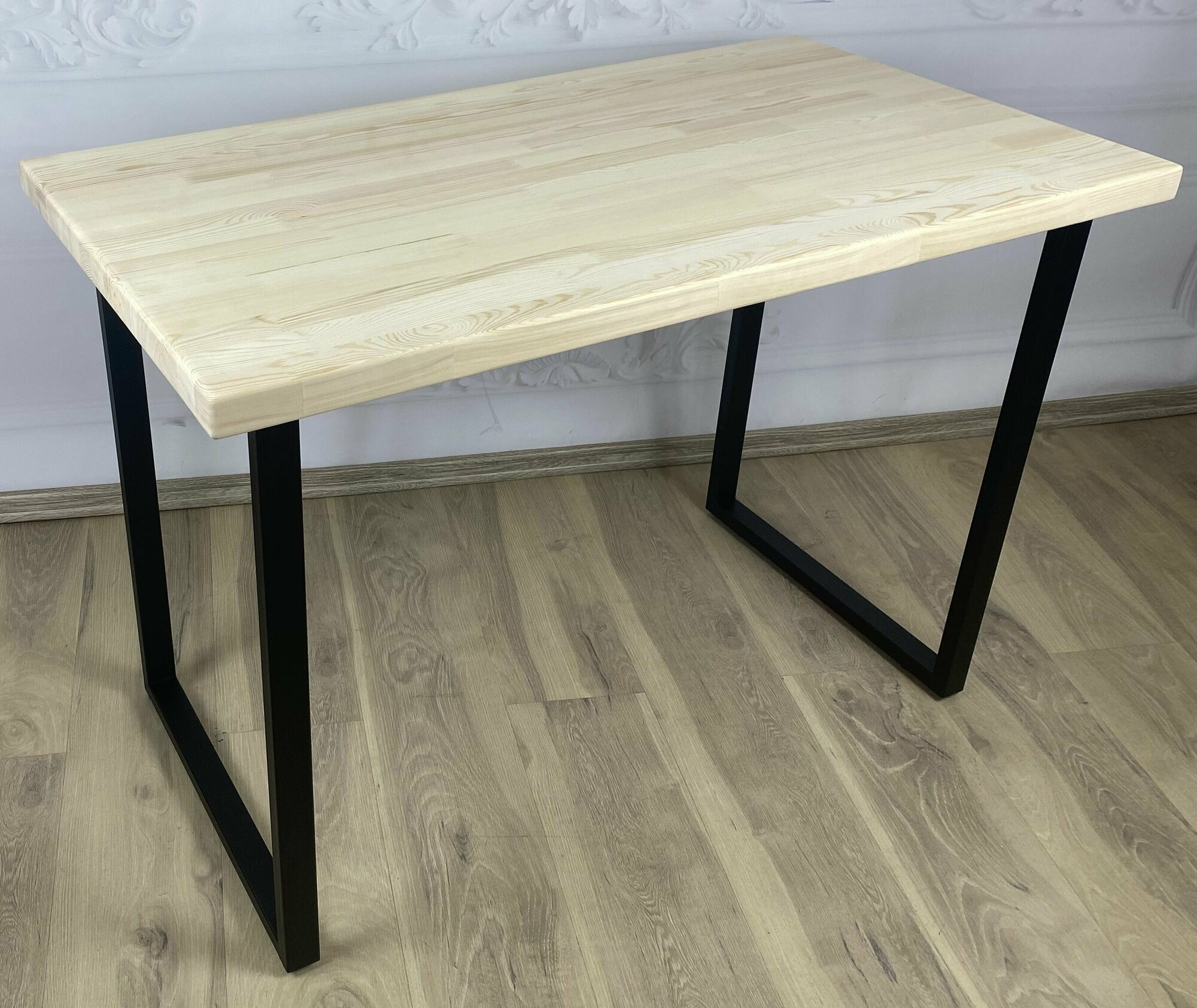 Купить Стол кухонный Loft со столешницей без шлифовки и покрытия из массива сосны 40 мм и черными металлическими ножками, 110х70х75 см