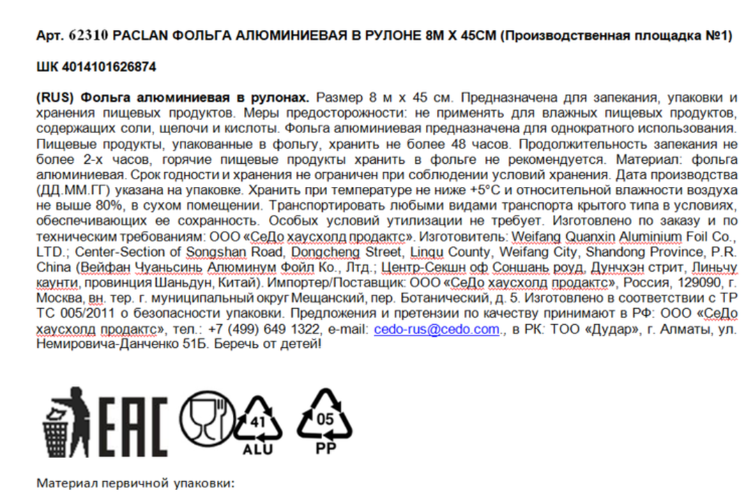 Фольга Paclan, алюминиевая, 8 м, 44 см в рулоне интересное:
