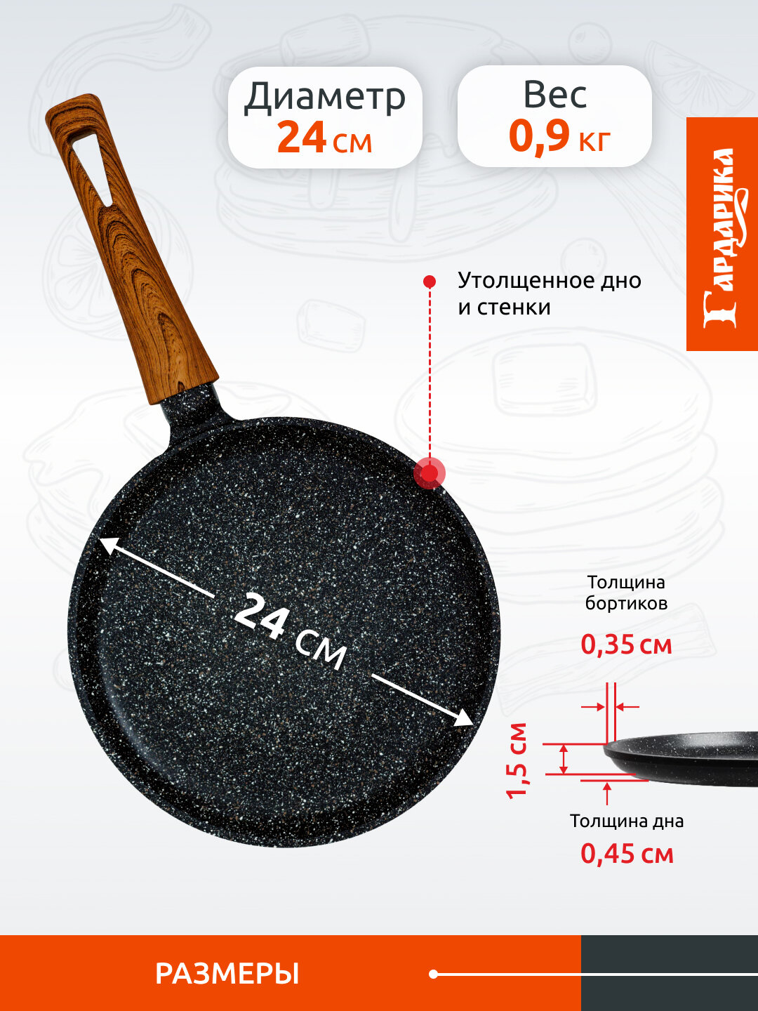 СохранитьСковорода блинная с антипригарным покрытием, блинница, 24 см, гардарика, 0824-18 интересное: