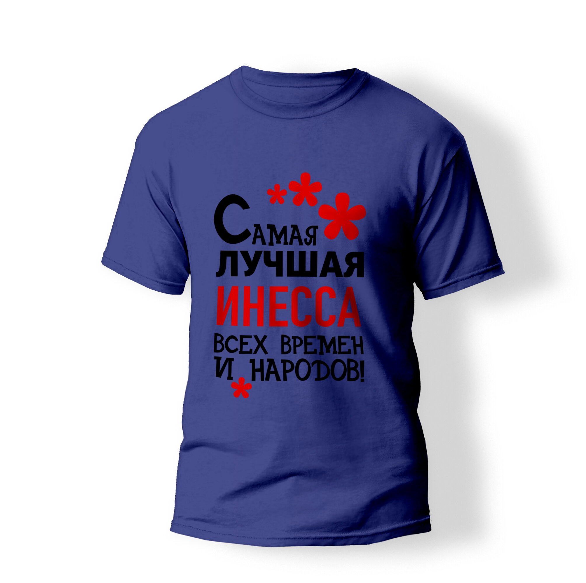 Купить Футболка именная, с надписью, принт "Самая лучшая Инесса всех времен и народов", для девочки синяя, 100% хлопок, 28-размер (98RU)-рост