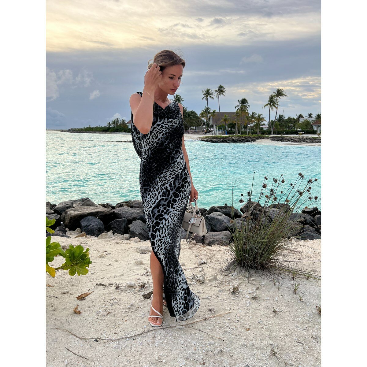 серое платье-миди из вискозы с открытой спиной и принтом снежный барс Размер M снежный барс интересное: