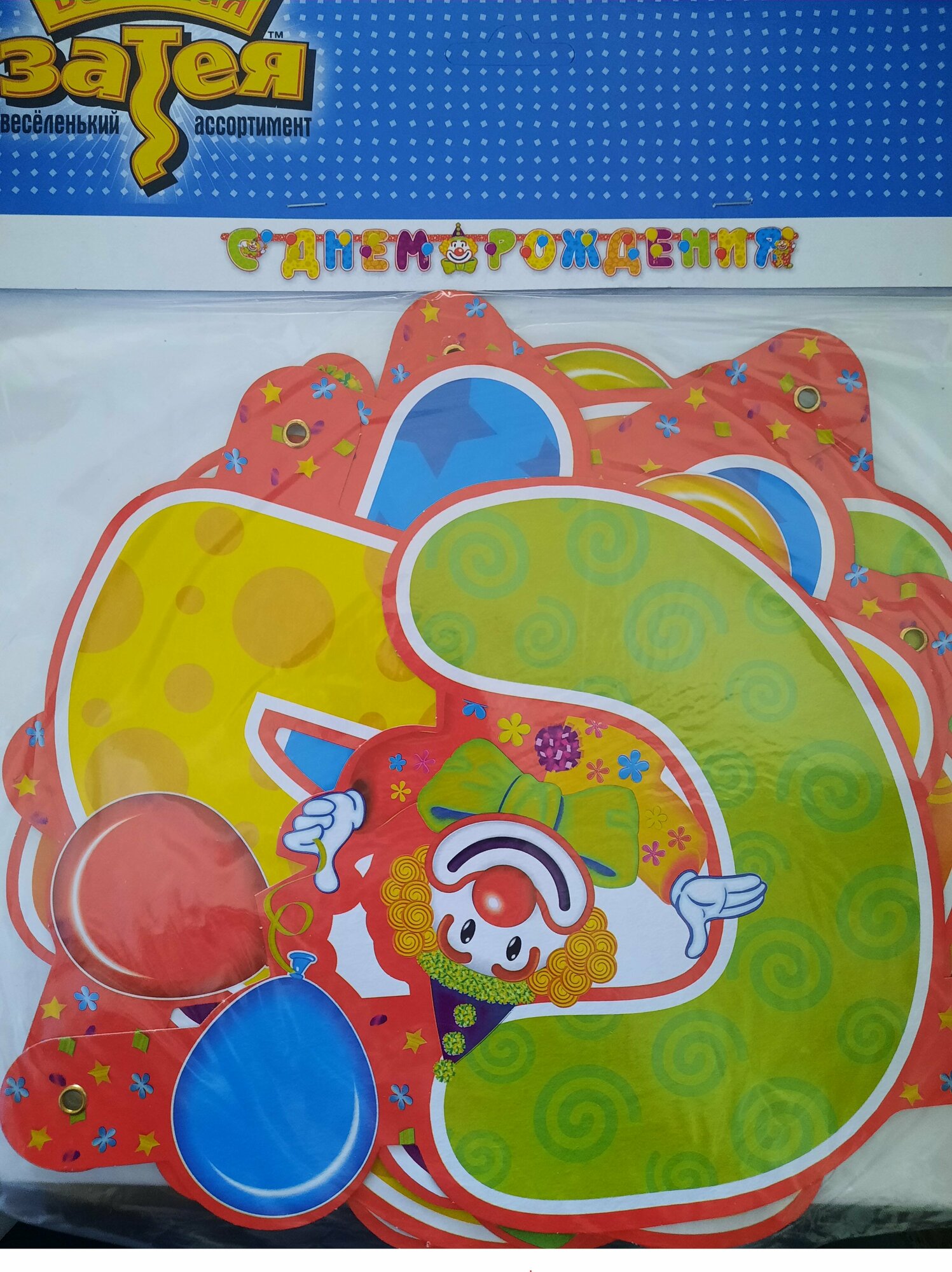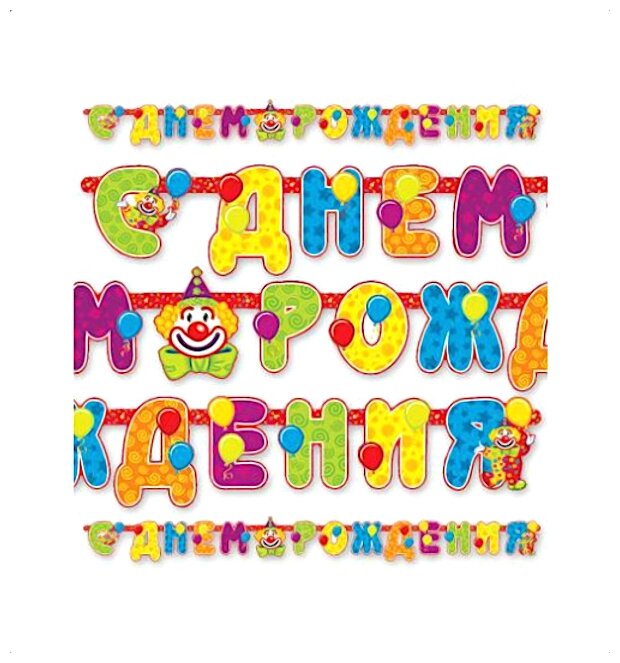Гирлянда Веселая затея "С днем Рождения", Клоун, буквы, 225 см интересное: