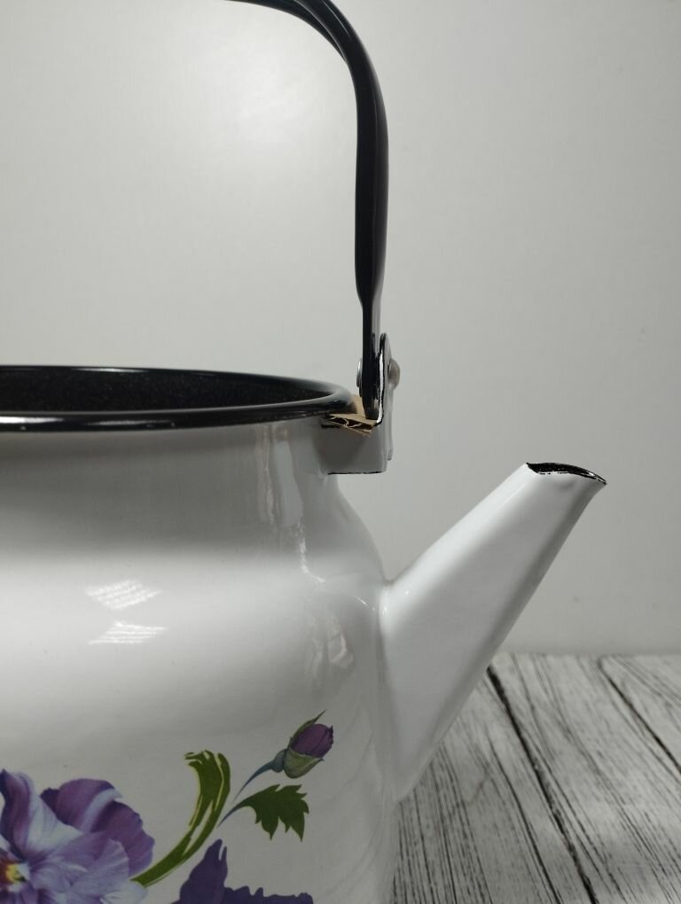 Купить Чайник эмалированный 3,5 литра Лысьва белый, анютины глазки, подвижная ручка, все виды плит, индукция