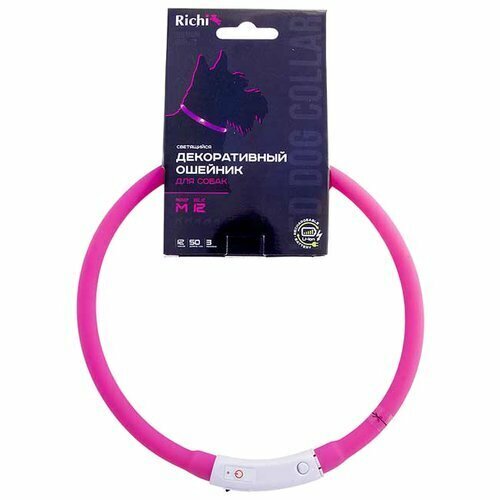Декоративный LED ошейник RICHI 35см, розовый силиконовый, 3 режима, встроенный аккумулятор, зарядка от USB