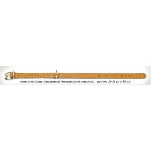 Аркон Ошейник кожаный 16/1, размер 26-34 см x 16 мм, цвет натуральный, о16/1, один слой кожи, украшенный декоративной строчкой