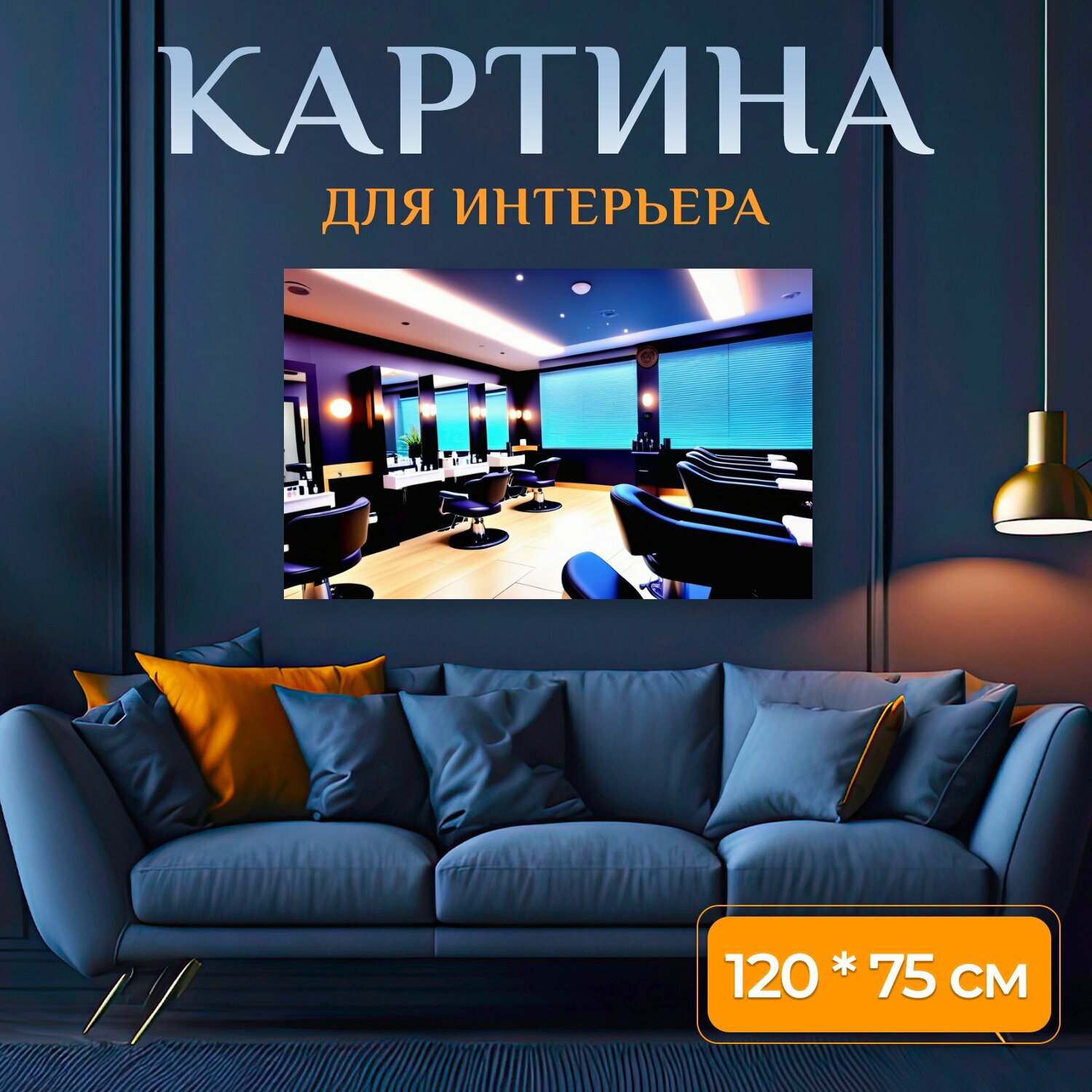 Купить Картина на холсте в парикмахерскую "Парикмахерская с уютной атмосферой , " на подрамнике 120х75 см. для интерьера