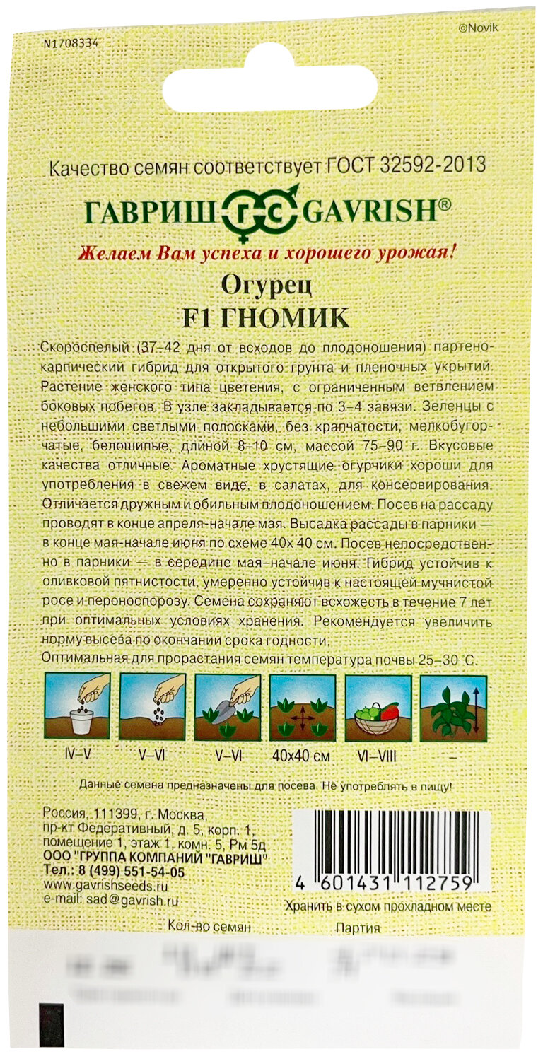 СохранитьСемена Огурец Гномик F1 Парт., раннеспелый, (гавриш) 10шт Н21 интересное: